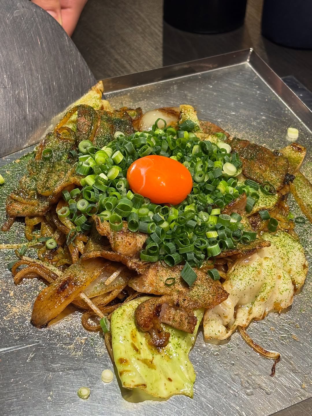 今回は人気のぶた焼きそばに卵黄とたっぷりのねぎをトッピングしたメニューをご紹介💁♀️