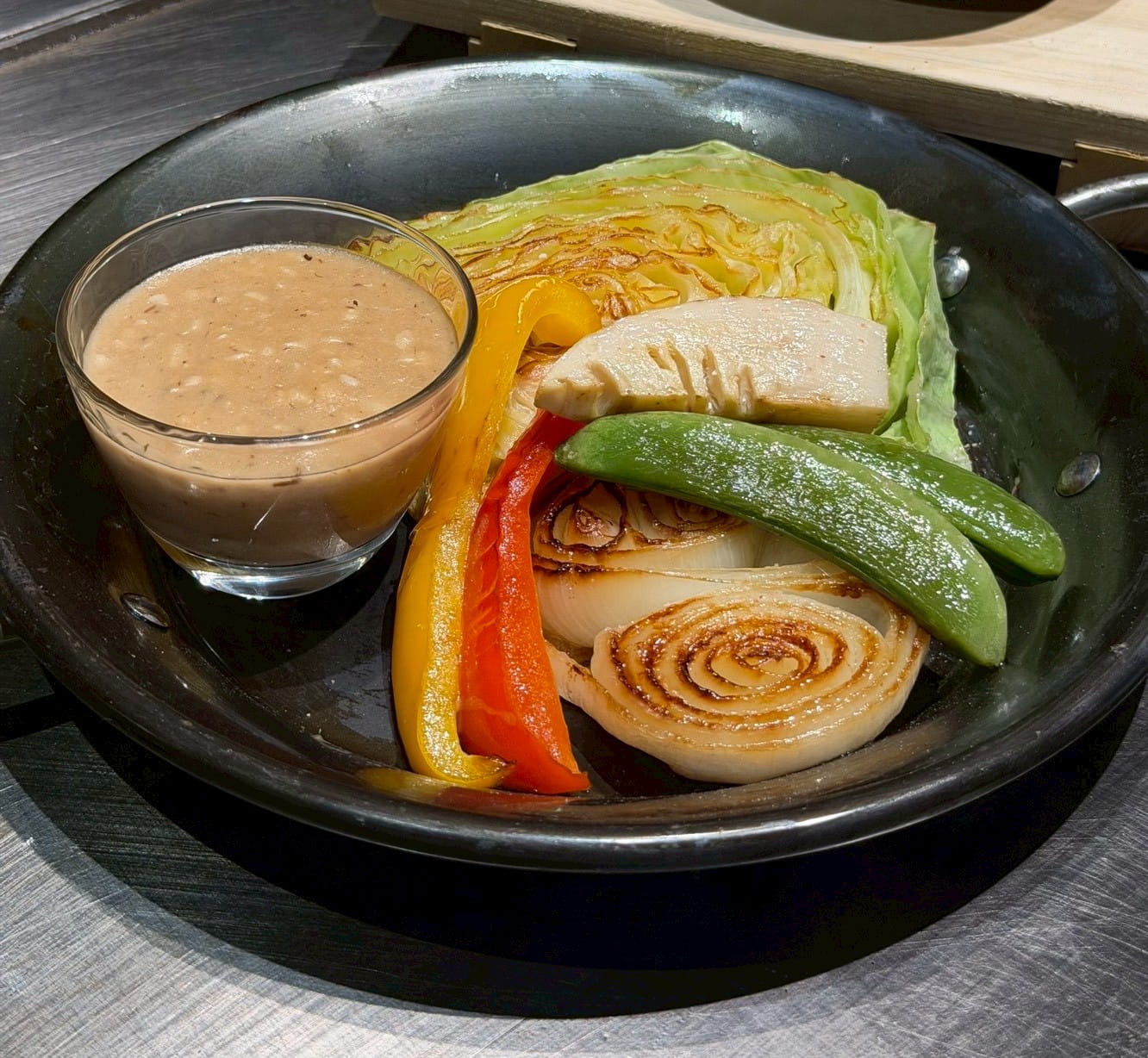 Rich and savory monjayaki with the deep umami of miso and creamy tang of cream cheese.